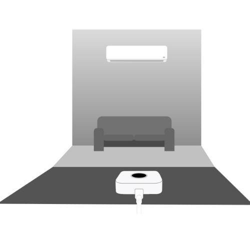 Si el techo es muy alto o el cuarto es muy amplio, intenta colocar el Cuby apuntando directamente al Aire Acondicionado.