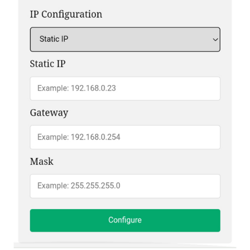 1. En la opción IP configuration, selecciona la opción "static IP" , te mostrará las opciones para configurar la IP fija