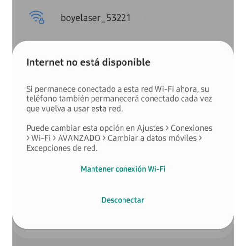 *Si te aparece una ventana emergente con un mensaje "Internet no disponible" o "sin conexión" da click en la opción de "Seguir conectado" o "mantener conectado" según sea el caso.