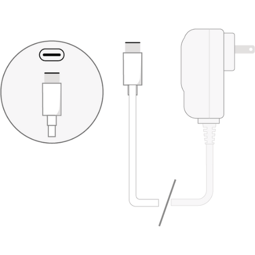 Conector USB-C con salida de 5VCD y entrada que soporta 90 VCA a 250 VCA (50/60 Hz).