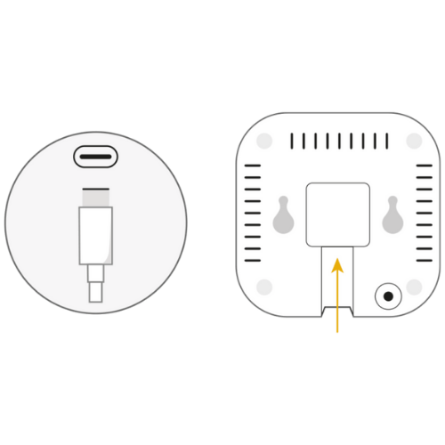 3. Conecta el adaptador de voltaje a la red eléctrica y el extremo USB-C al Cuby.