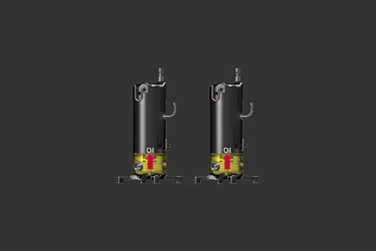 El sensor de aceite realiza la operación de recuperación de aceite solo si es necesario para aumentar la eficiencia del compresor. También equilibra y gestiona el nivel de aceite en ambos compresores.