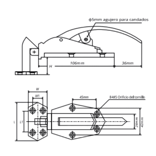 Este cerrojo está diseñado para ofrecer seguridad adicional en cámaras frigoríficas y de congelación. No requiere llave, pero cuenta con barreno para colocar candado, lo que permite reforzar el control de acceso.