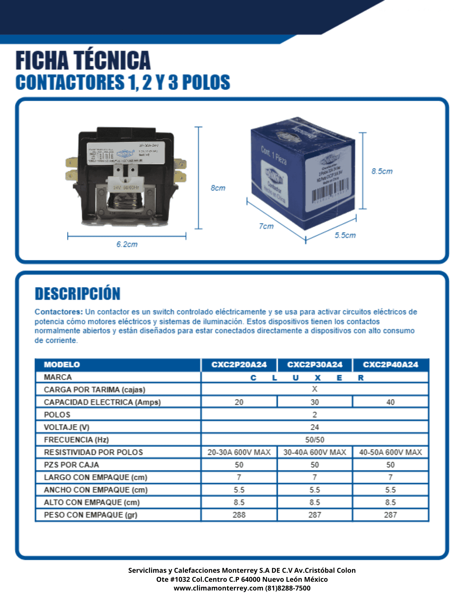 ⚡🔧 Contactor Cluxer 2 Polos | 20 Amps | Bobina 208–240V | 50/60Hz – CXC2P20A220