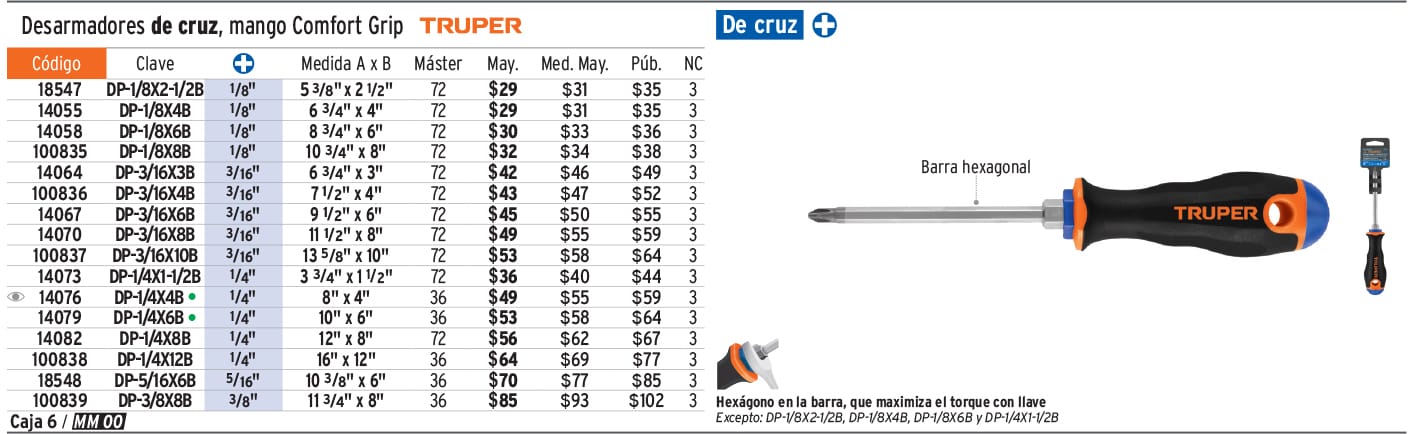 Desarmador de cruz 1/4' x 4' mango Comfort Grip, Truper-DP-1/4X4B / 14076