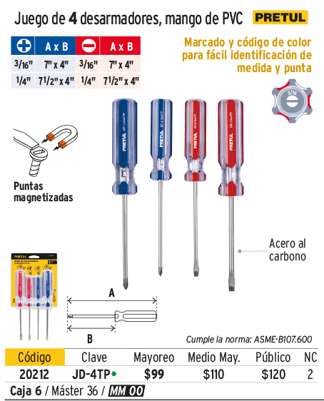 🔧 Juego de Desarmadores Pretul JD-4TP (4 piezas) 🔧