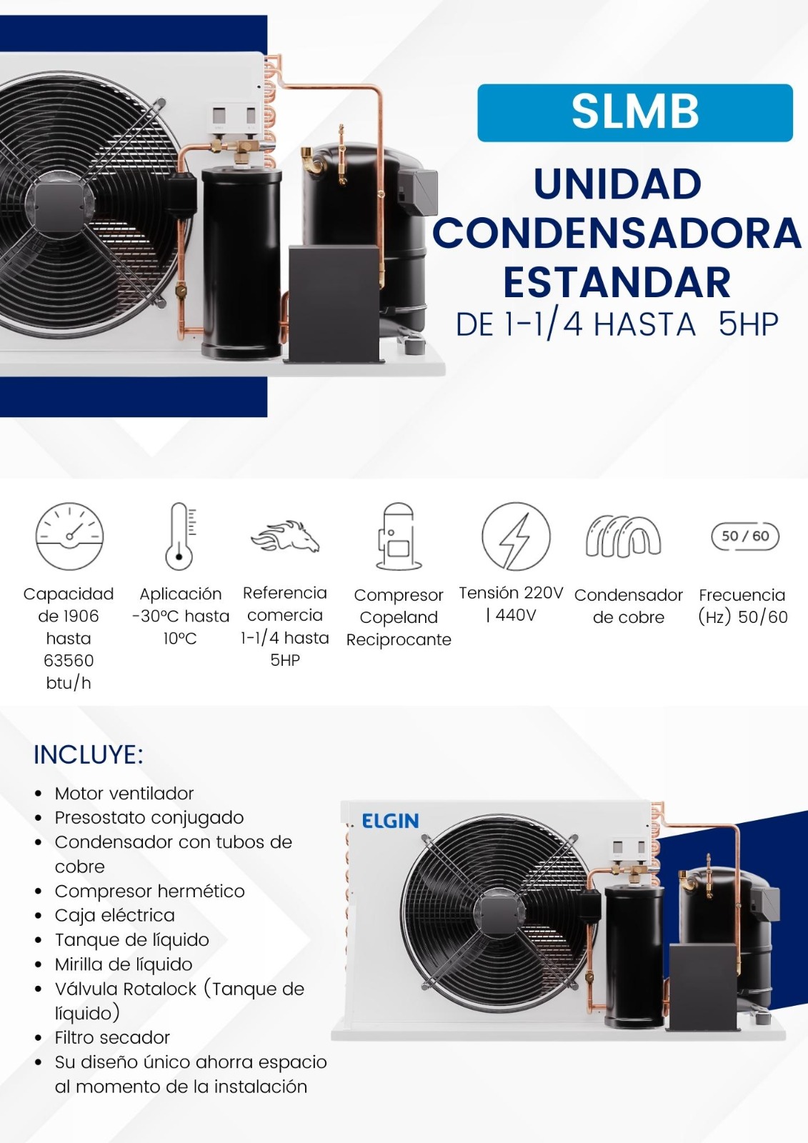Unidad Condensadora SL 220/3F/60HZ 3-1/2HP, Marca Elgin, Media y Baja Temperatura, R404A