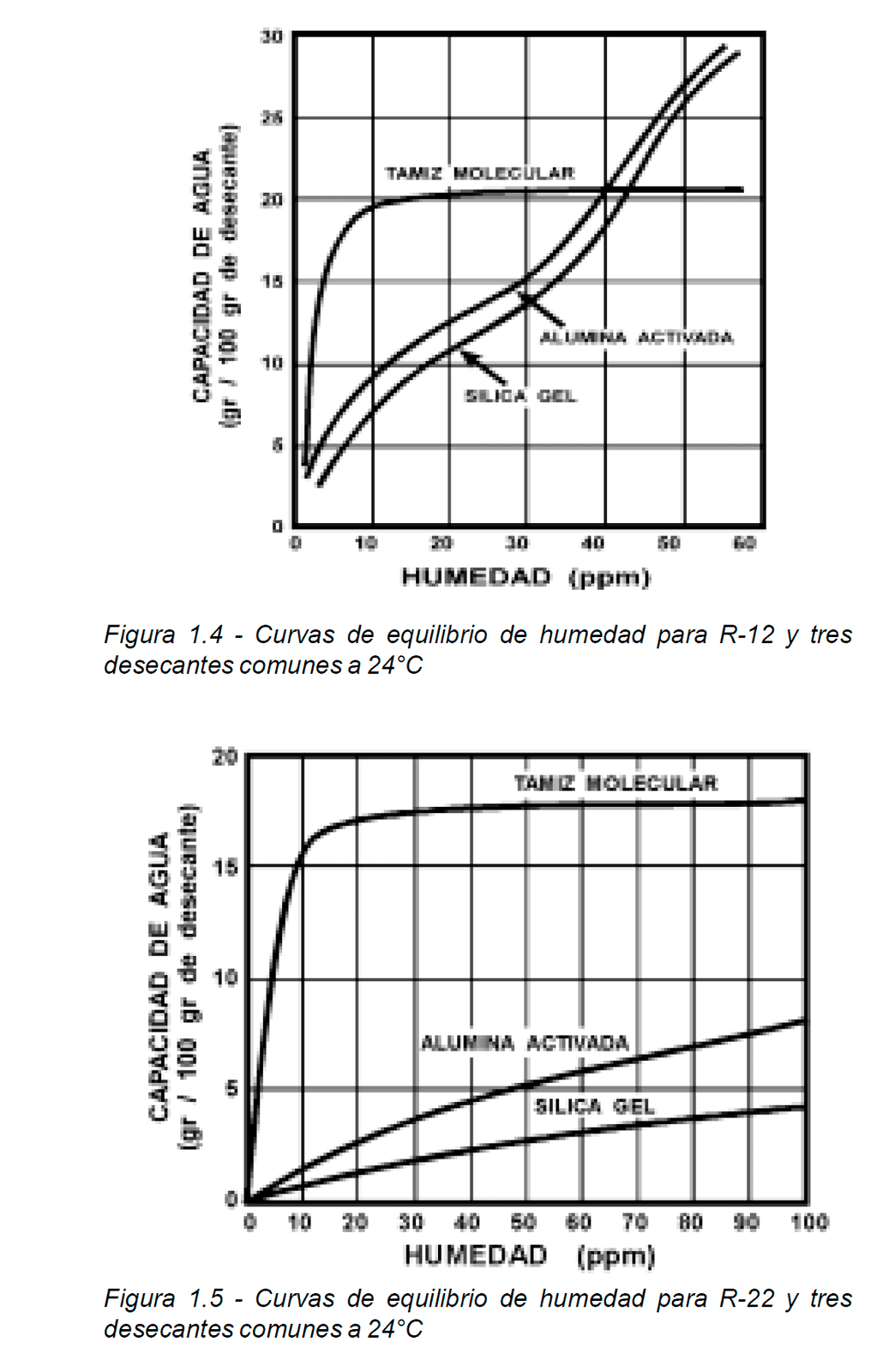 En algunos desecantes la capacidad de adsorción de agua, se ve afectada por la cantidad de aceite presente en el refrigerante.