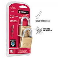 Blíster con 2 candados de latón de 40mm con gancho corto