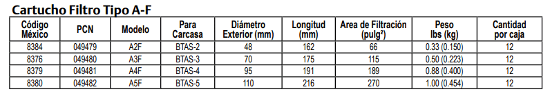 Los BTAS se surten sin los filtros o filtros deshidratadores (cartuchos)