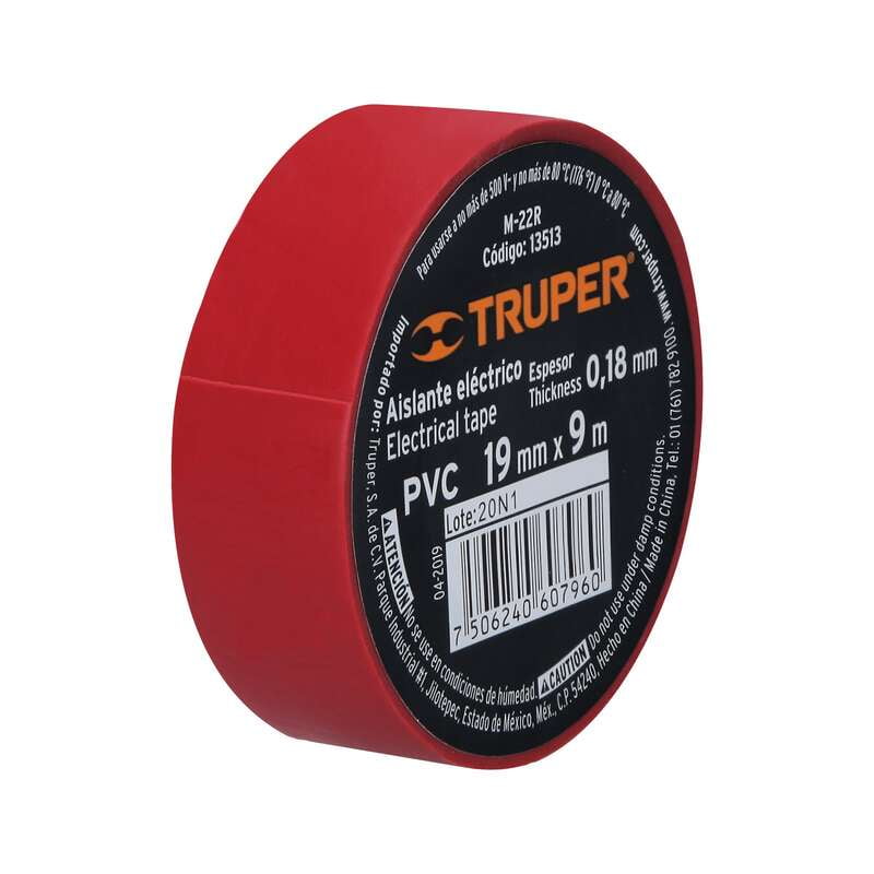 Cinta de aislar de 9 m x 19 mm, roja, Truper - 13513 - M-22R - Caja con 8 Pieza – Master 288