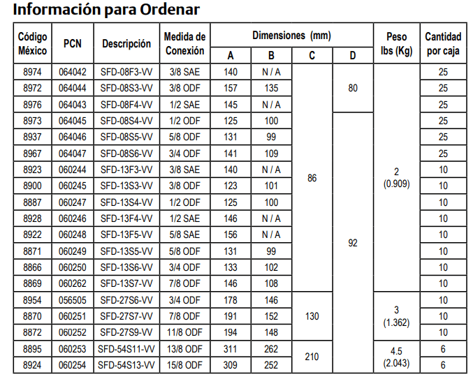 Filtro Deshidratador Linea De Succion Sellado Flare 3/8 Cap. Flujo 0.6 Ton. Emerson - Sfd-08F3Vv