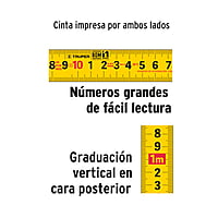 • Cinta impresa por ambos lados, recubierta de laca para máxima duración (Números grandes de fácil lectura / graduación métrica horizontal y vertical)