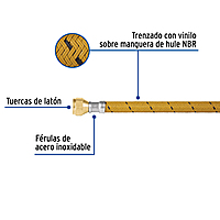 • Trenzado con vinilo sobre manguera de hule NBR para mayor durabilidad y resistencia