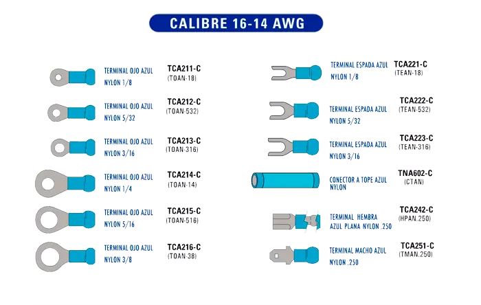 🔹 Color: Azul (identificación para calibre 16-14 AWG)
