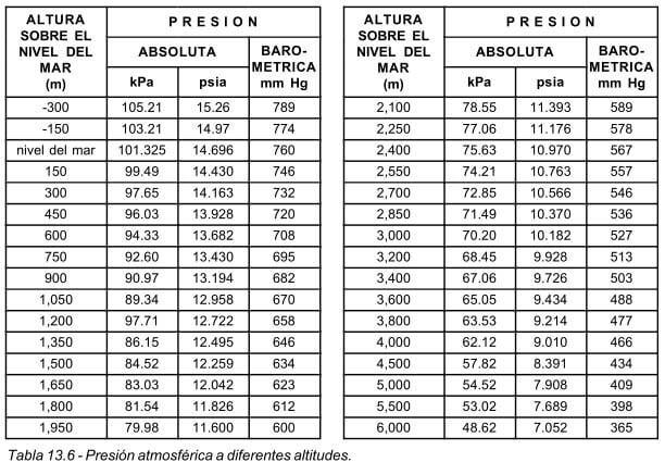 En algunos lugares, particularmente a grandes alturas, también puede ser necesario utilizar un barómetro para hacer los ajustes necesarios a las bajas presiones, como se muestra en la tabla 13.6.