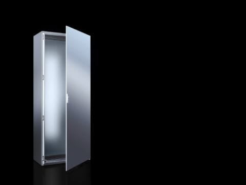 Armarios de acero inoxidable 1.4301, (AISI 304) y de acero inoxidable 1.4404, (AISI 316L). Principio de construcción idéntico al de chapa de acero. Fácil equipamiento interior. Rápido equipamiento de la puerta.