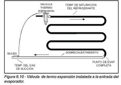 Cuando aumenta la carga térmica en el evaporador, el refrigerante alimentado por la válvula no es suficiente y se sobrecalienta, esto aumenta la presión del bulbo y hace que la válvula abra más, permitiendo que pase más líquido. Por el contrario, si la carga térmica en el evaporador disminuye, el refrigerante que está alimentando la válvula no se alcanza a evaporar y disminuye su sobrecalentamiento; esto hace que reduzca la presión del bulbo, se cierre la válvula y se reduzca el flujo de líquido. Es importante mencionar que al variar la carga térmica del evaporador, también varía la presión dentro del mismo. Si aumenta la carga, disminuye la presión, y si disminuye la carga, se reduce la presión.