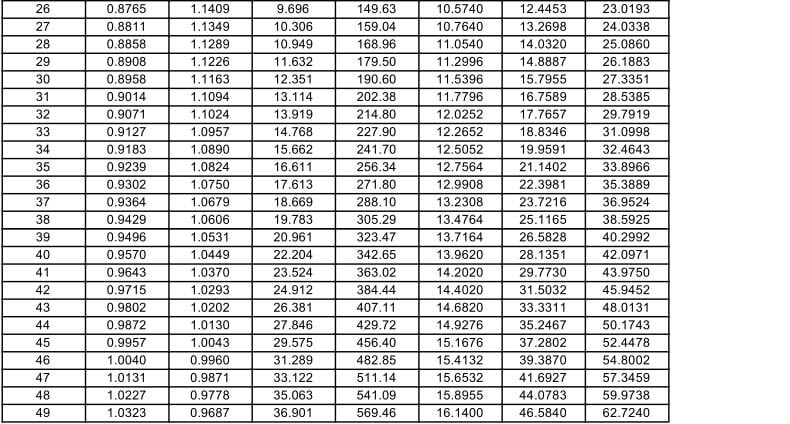 La columna 4, muestra la cantidad de humedad por peso en gramos, que se necesita para saturar (100% de hr) el espacio ocupado por un kilogramo de aire seco, a la temperatura de la columna 1. La columna 5 es similar, pero en unidades del sistema inglés, es decir, granos de humedad requeridos para saturar el espacio ocupado por una libra de aire seco a la temperatura de la columna 1.