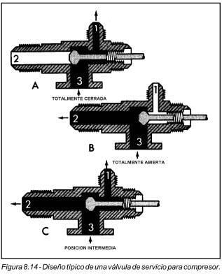 Las válvulas de servicio pueden ser de dos tipos: válvulas de servicio para compresor, o válvulas de servicio para tanque recibidor.