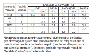 Girando el vástago de ajuste en la VET cambia el sobrecalentamiento. En el sentido del reloj – aumenta el sobrecalentamiento En el sentido contrario del reloj – disminuye el sobrecalentamiento
