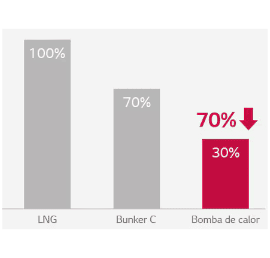 La bomba de calor de tornillo refrigerada por agua de LG es un sistema muy eficiente y económico que suministra agua caliente con una temperatura de hasta 80 ℃ usando el 70-80 % de la energía no utilizada.