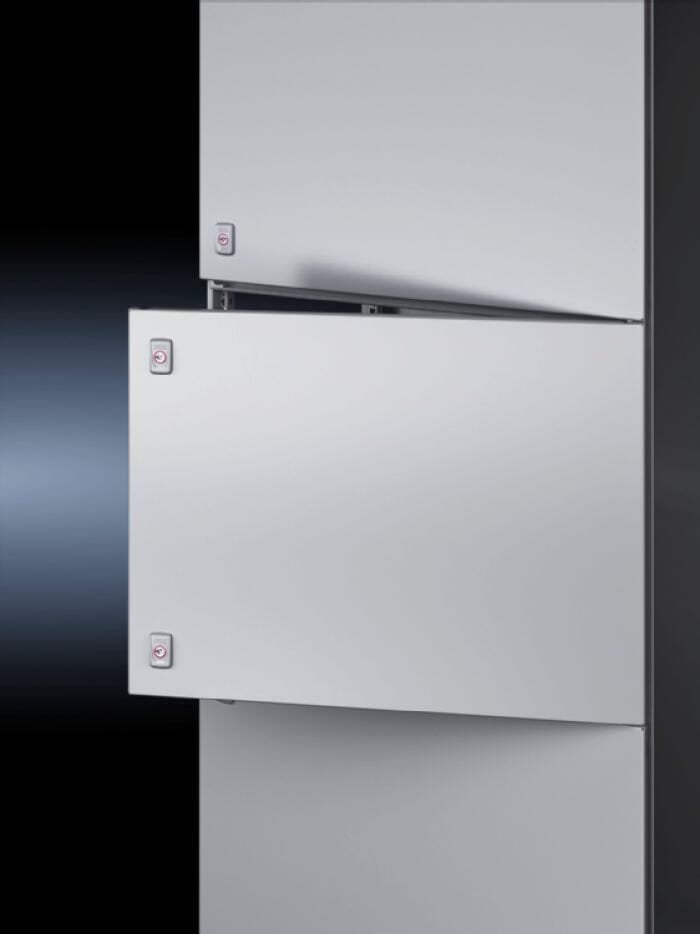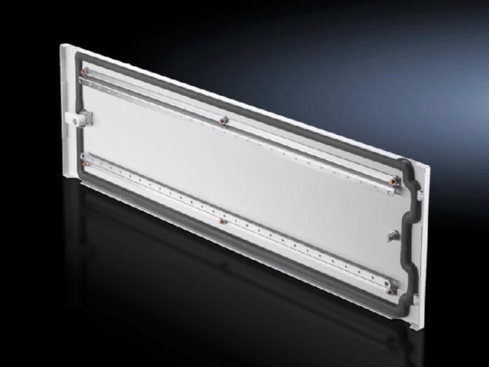Para la separación de diferentes áreas de función en el armario de distribución. Entre la pantalla frontal superior e inferior es posible combinar puertas parciales con o sin ventana. El frontal modular puede montarse al sistema de armarios Rittal en sustitución de puertas frontales o dorsales.