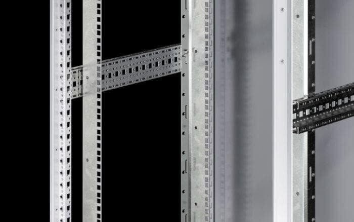 Guías perfil y marco de montaje para el equipamiento interior con uno o dos niveles de 19" para cajas murales, armarios individuales y armarios ensamblables.