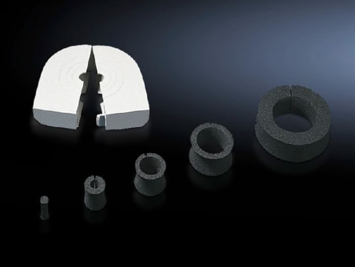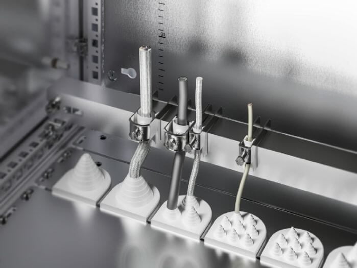 Accesorios para una entrada flexible de los cables en los sistemas de cajas y armarios, así como para una eficiente gestión del cableado en cajas y armarios con retícula de 19": entradas de cables, placas de entrada de cables, prensaestopas, paso de cables, accesorios de guiado de cables en cajas, guiado de cables de 19".
