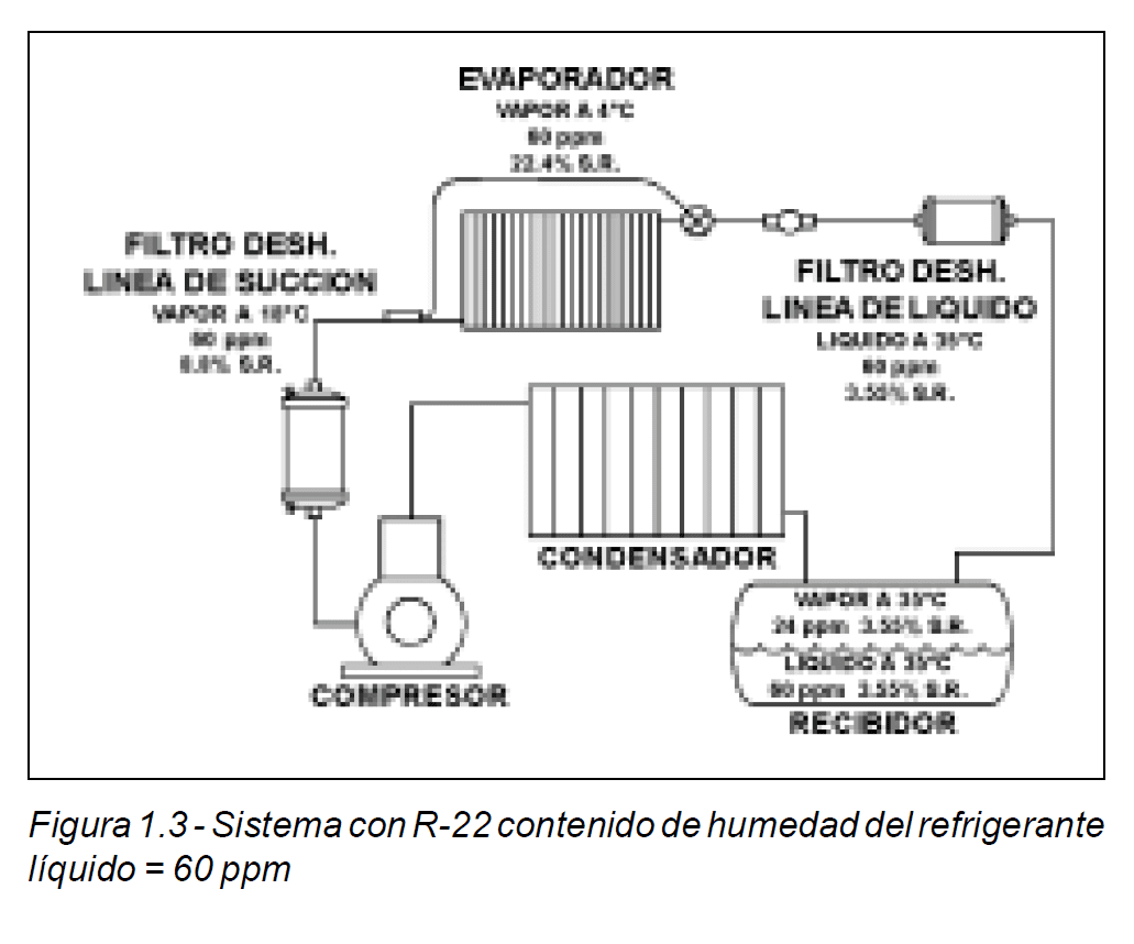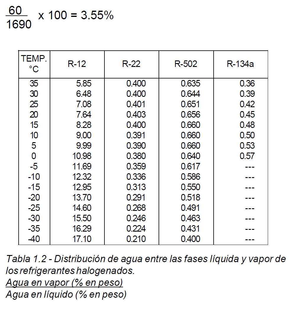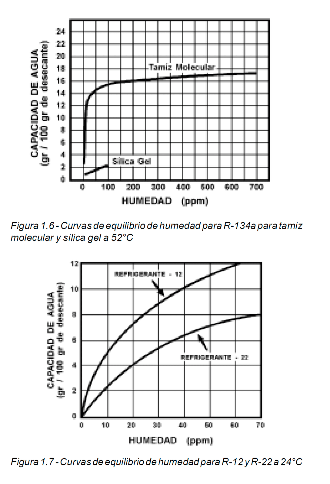 En algunos desecantes la capacidad de adsorción de agua, se ve afectada por la cantidad de aceite presente en el refrigerante.