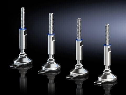 Pies de nivelación HD para minimizar los tiempos de limpieza gracias a las roscas completamente ocultas y estanqueizadas y para compensar irregularidades del suelo hasta un ángulo de 10° mediante placa de base flexible