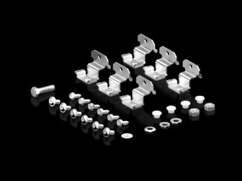 Posibilidad de selección de la fijación de placa de montaje, de lateral, de dorsal, partición suelo, cubierta del interruptor principal, bisagra, cantonera de zócalo, bolsa de accesorios