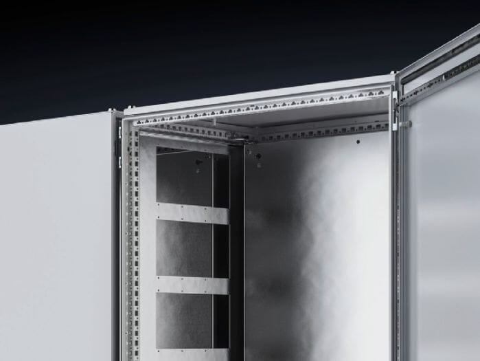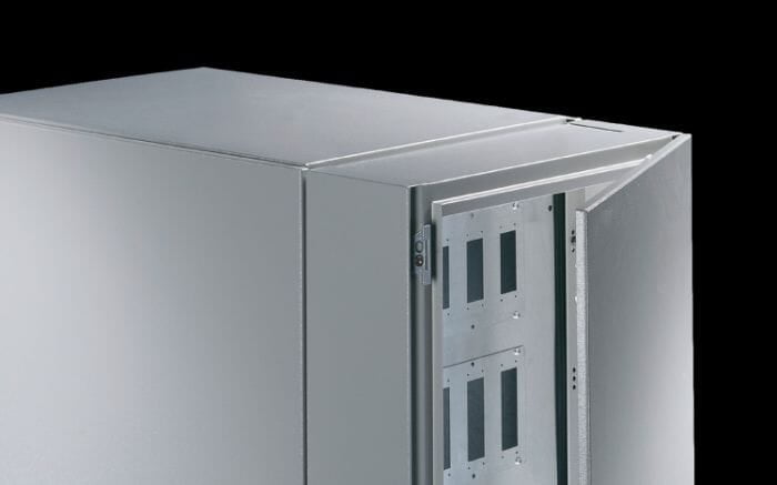 Es posible realizar la subdivisión de una fila de armarios en diferentes áreas de función mediante pared de separación o estanca. En combinación con sistemas de cierre también es posible establecer diferentes conceptos de autorización para filas de armarios. Paredes de separación para módulos equipadas con conectores convencionales.