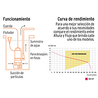 - Diseñada para uso doméstico e industrial como en fosas, pozos, minas y drenaje (para partículas hasta de 34 mm)