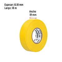 Cinta de aislar de 18 m x 19 mm, amarilla, Truper - 12503 - M-33A - Caja con 8 Pieza – Master 144
