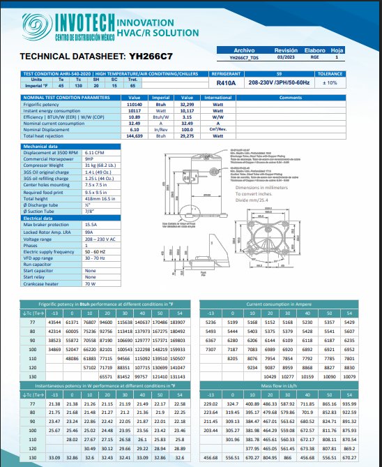 Compresor Tipo Scroll 9 Hp 208/230 60Hz Trifásico Invotech - Yh266C7-210