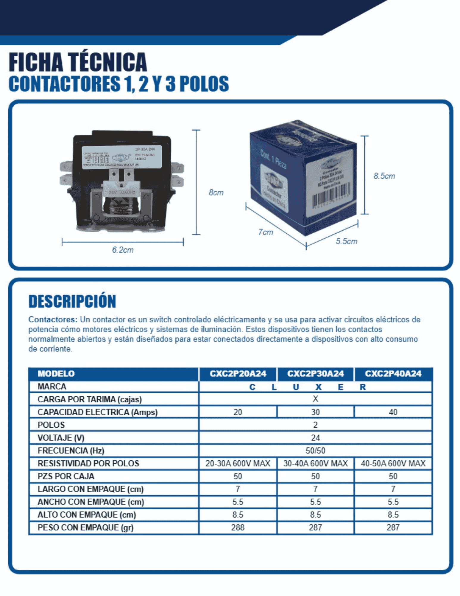 ⚙️ Contactor de 2 Polos, 30 Amps – Cluxer CXC2P30A220 🔌