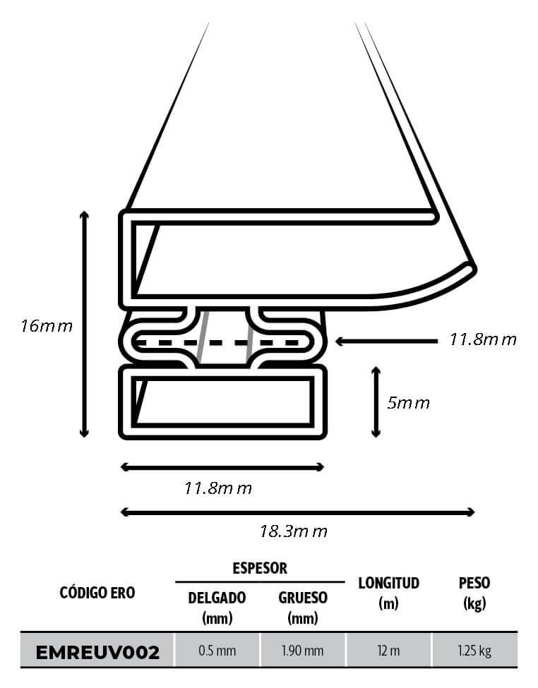 Empaque Perfil Ceja Larga 0.5 Espesor Delgado, 1.90 Espesor Grueso EMREUV002