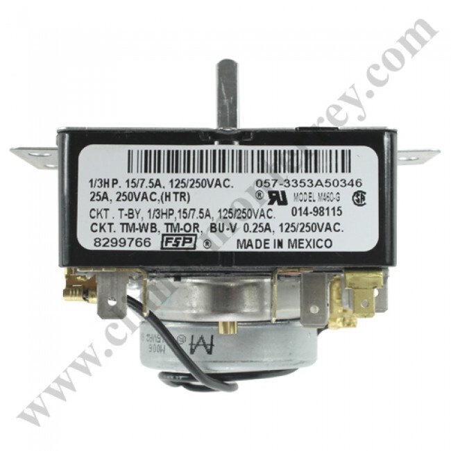 Timer de 3 ciclos para secadora, 1/3Hp, 15/7.5A, 125/250Vac, 25A, 250Vac (Htr) / Ckt.T-By, 1/3Hp, 15/7.5A, 125/250Vac / Ckt.Tm-Wb, Tm-Or, Bu-V 0.25A, 125/250-Vac - 8299766