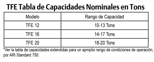 • Rango de capacidades entre 12 y 20 tons, R-410A.