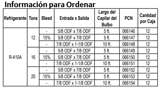 Valvula De Expansion Termostatica Serie Tfe R-410A,Soldable Ee5Ft 5/8X7/8 Soldable S/T 2A,Tfesb12Zaa