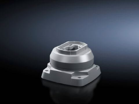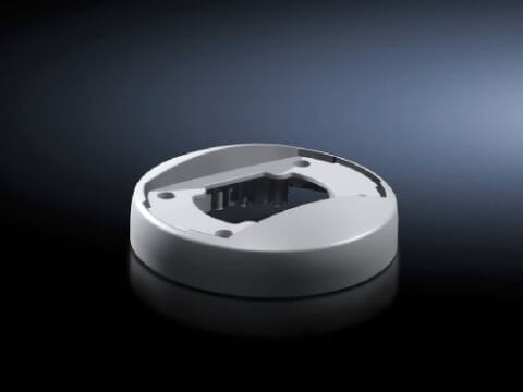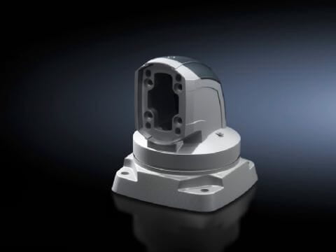 Para la fijación pivotante del sistema de brazo soporte a superficies horizontales, también puede realizarse una fijación colgante al techo. Cubierta desmontable para facilitar la entrada de cables.