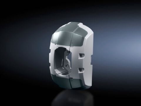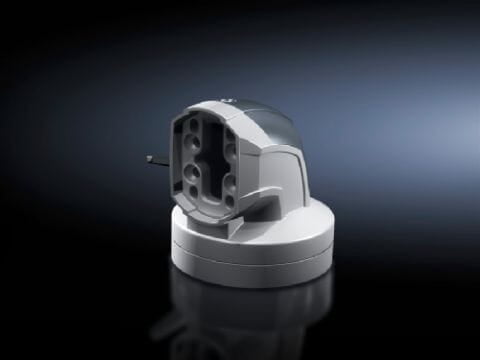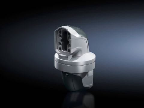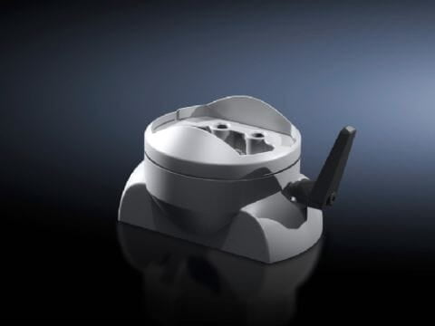Para una unión pivotante de los perfiles soporte horizontales en el sistema de brazo soporte. Cubiertas desmontables para facilitar la entrada de cables.