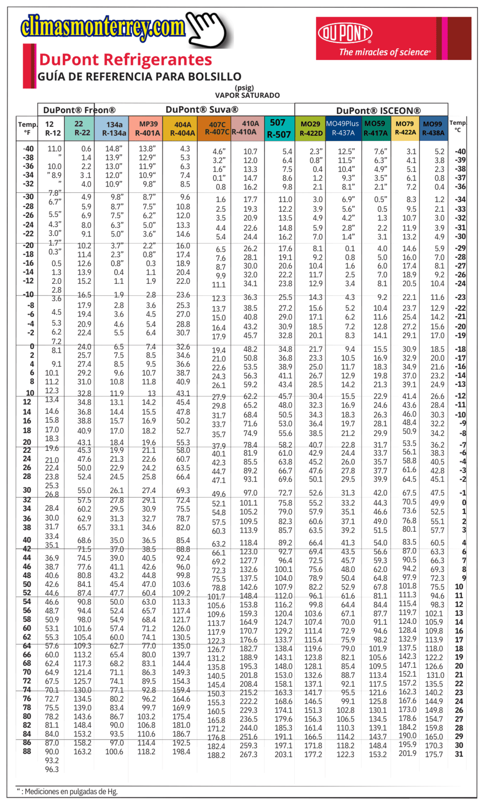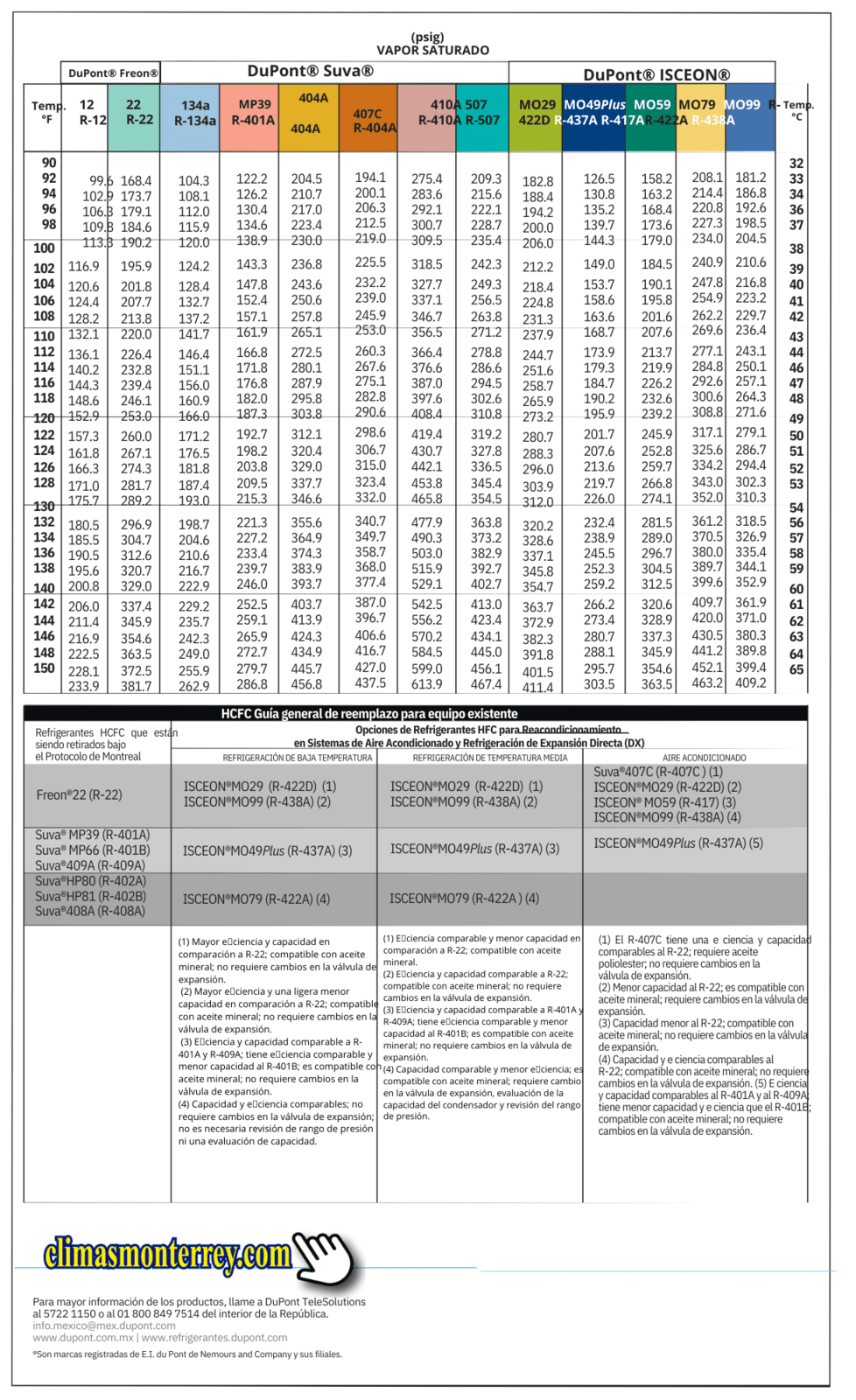 Tabla de presión-Temperatura de Refrigerantes PDF